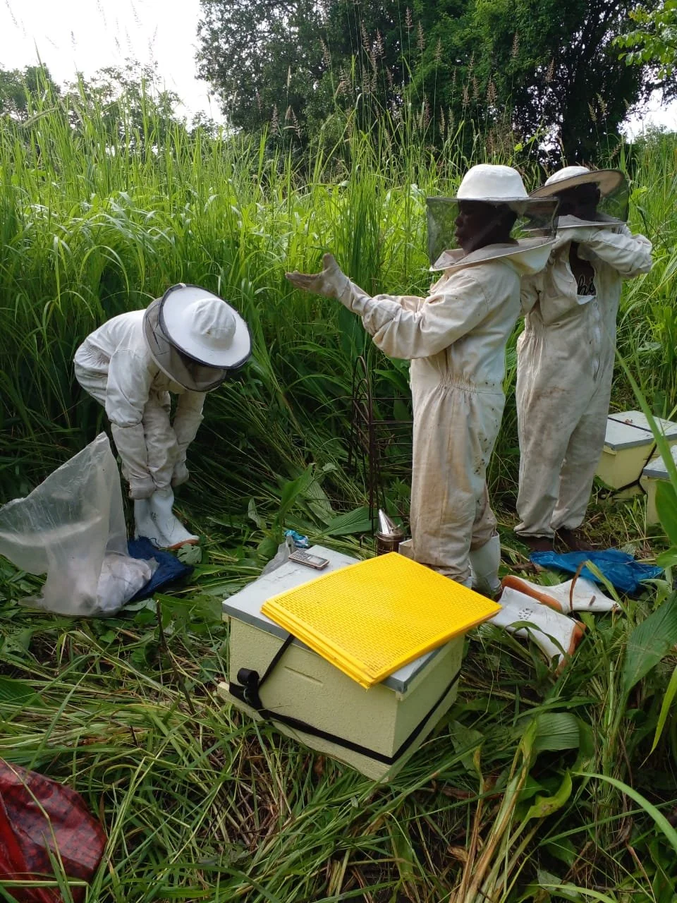 Empoderando a la comunidad Metuge: Launa Joaquim dirige la capacitación en técnicas modernas de producción de miel, fomentando la participación activa de su comunidad en el subproyecto del DGM centrado en la producción y procesamiento de miel como fuente alternativa de ingresos.