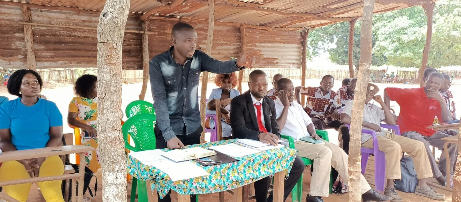 Benjamim Ouanho, becario del DGM Global, presenta una charla educativa sobre el medio ambiente en una escuela local de la región de Zambezia, Mozambique.